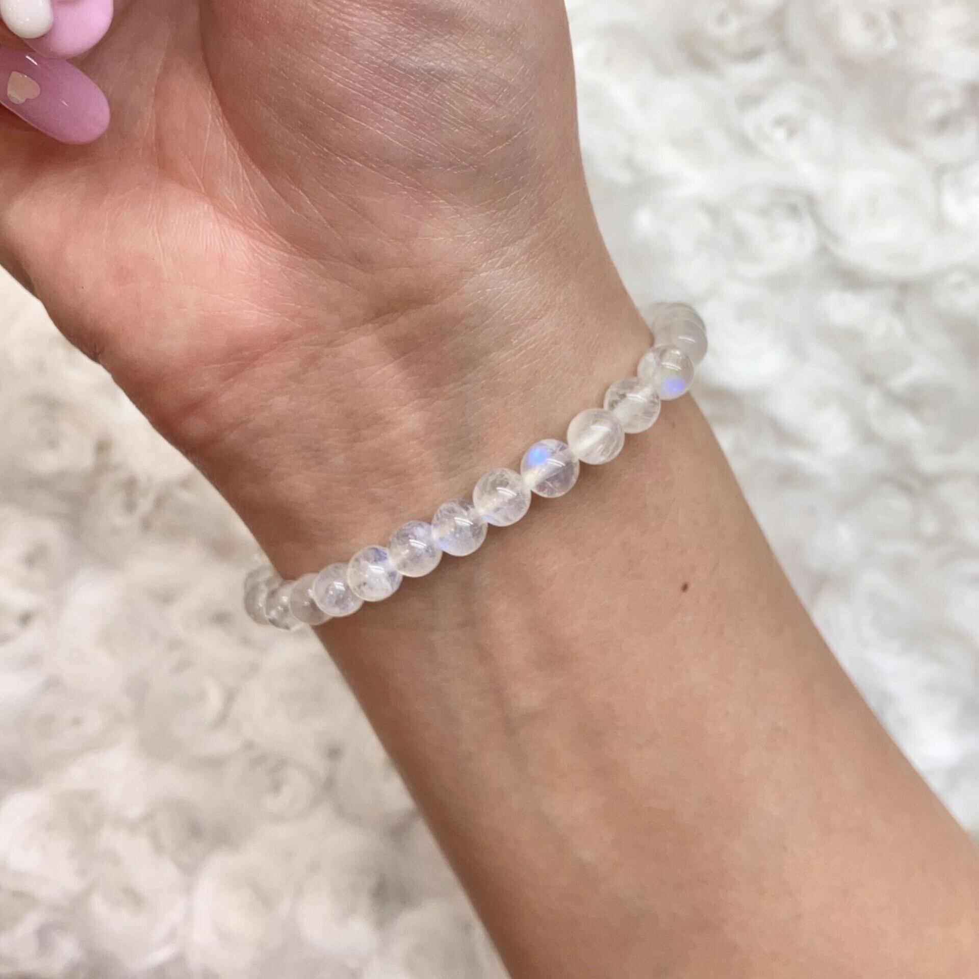 虹色の輝きを持つ、レインボームーンストーンのシンプルなブレスレット( *´艸`)